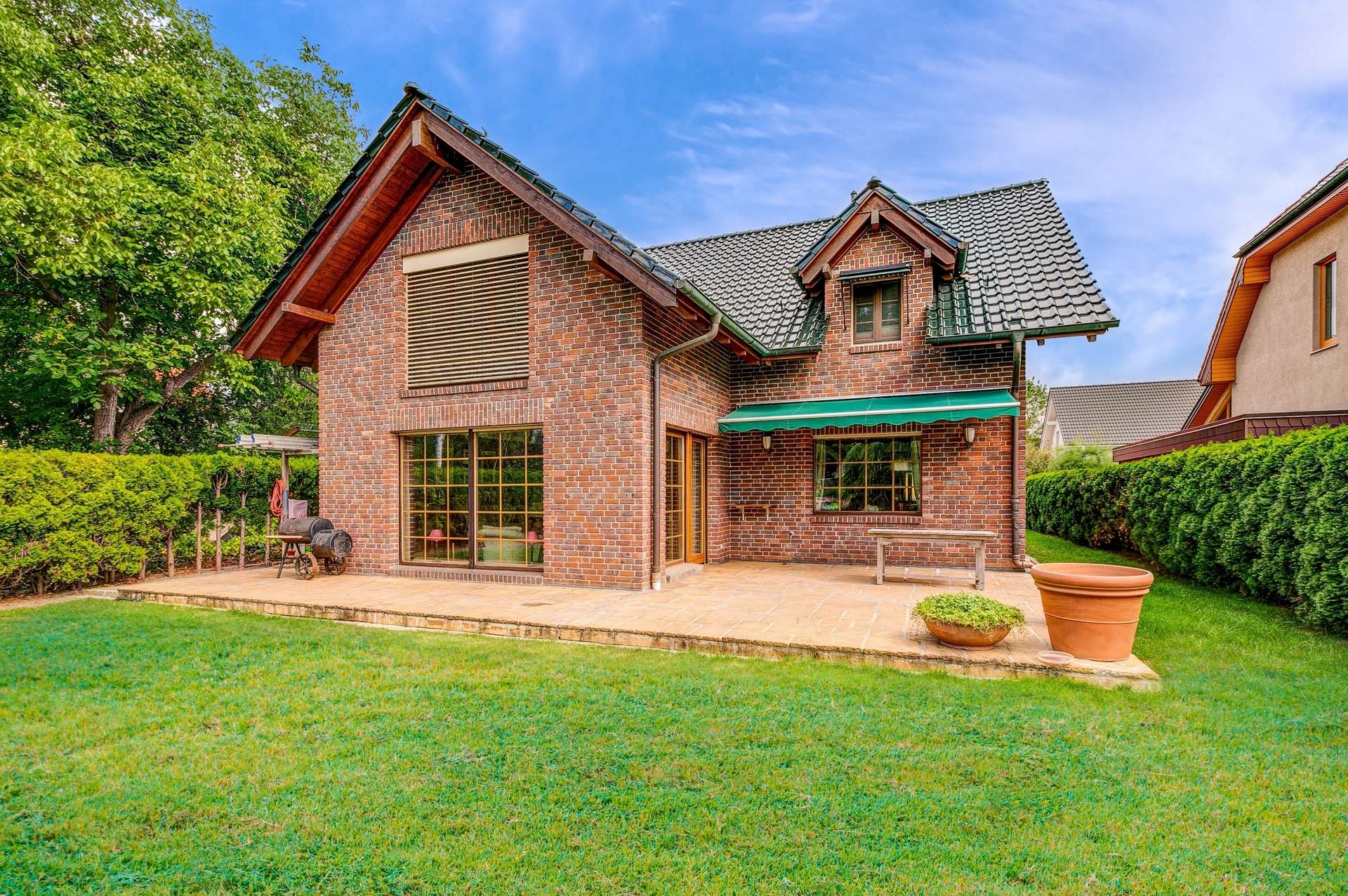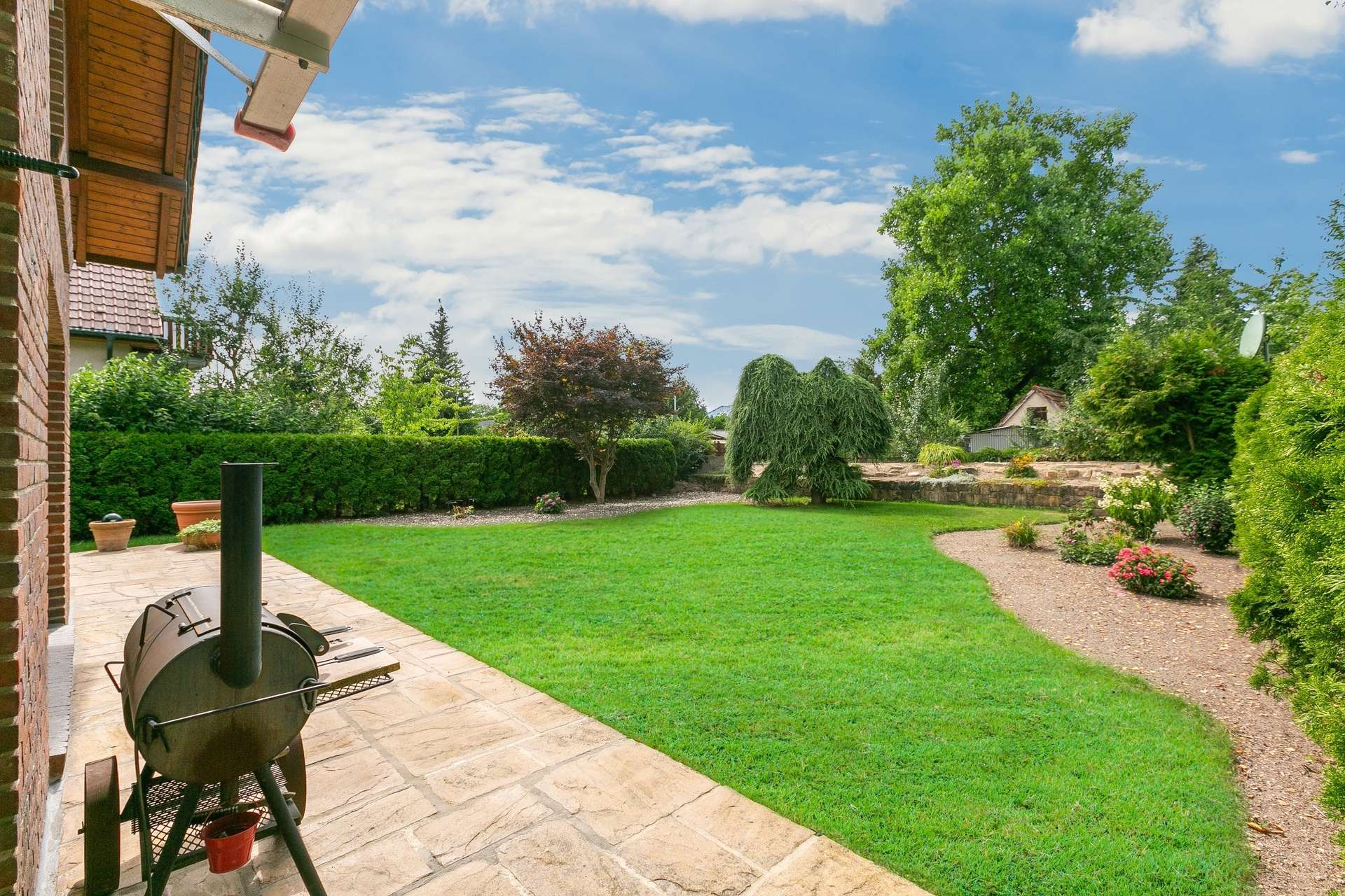 Sehr gepflegt, kein Sanierungsrückstau, ohne Renovierungsmaßnahmen bezugsfertig. Massiv und hochwertig. Ruhige Nebenstraße in grüner Wohnsiedlung. Ideal für große Familien. Wohnen und arbeiten kombinieren. Viel Platz, helle Räume und großzügiger beheizter und bewohnbarer Keller. Offener Grundriss ermöglicht zusätzliche Raumaufteilung. Terrasse, angelegter Garten mit Einfriedung, Pflasterung und Stellplätze.