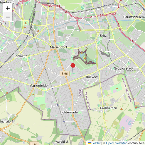 LAGE o nahes Umfeld: diverse Einkaufsmöglichkeiten, Cafés, Ärzte, Freizeiteinrichtungen und Restaurants am Mariendorfer Damm (ab ca. 600 m), Kombibad Mariendorf (unbestimmt geschlossen, ca. 350 m), Einkaufszentrum Gropius Passagen (ca. 4,7 km) o öffentlicher Personennahverkehr: diverse Buslinien in sämtliche Stadtteile (u.a. ab ca. 500 m), Alt-Mariendorf (U6, ca. 2,3 km), Marienfelde (S2, ca. 2 km), Bahnhof Südkreuz ca. 40 min., Potsdamer Platz ca. 45 min, Alexanderplatz ca. 50 min., Hauptbahnhof ca. 30 min., Flughafen BER ca. 50 min o Autoanbindung: südliche Stadtrandlage nahe der B96, A10 Kreuz Rangsdorf ca. 14 km, A100 Auffahrt Gradestraße ca. 5 km, A113 ca. 7 km, Bahnhof Südkreuz ca. 8 km, Potsdamer Platz ca. 11 km, Alexanderplatz ca. 13 km, Flughafen BER ca. 16 km