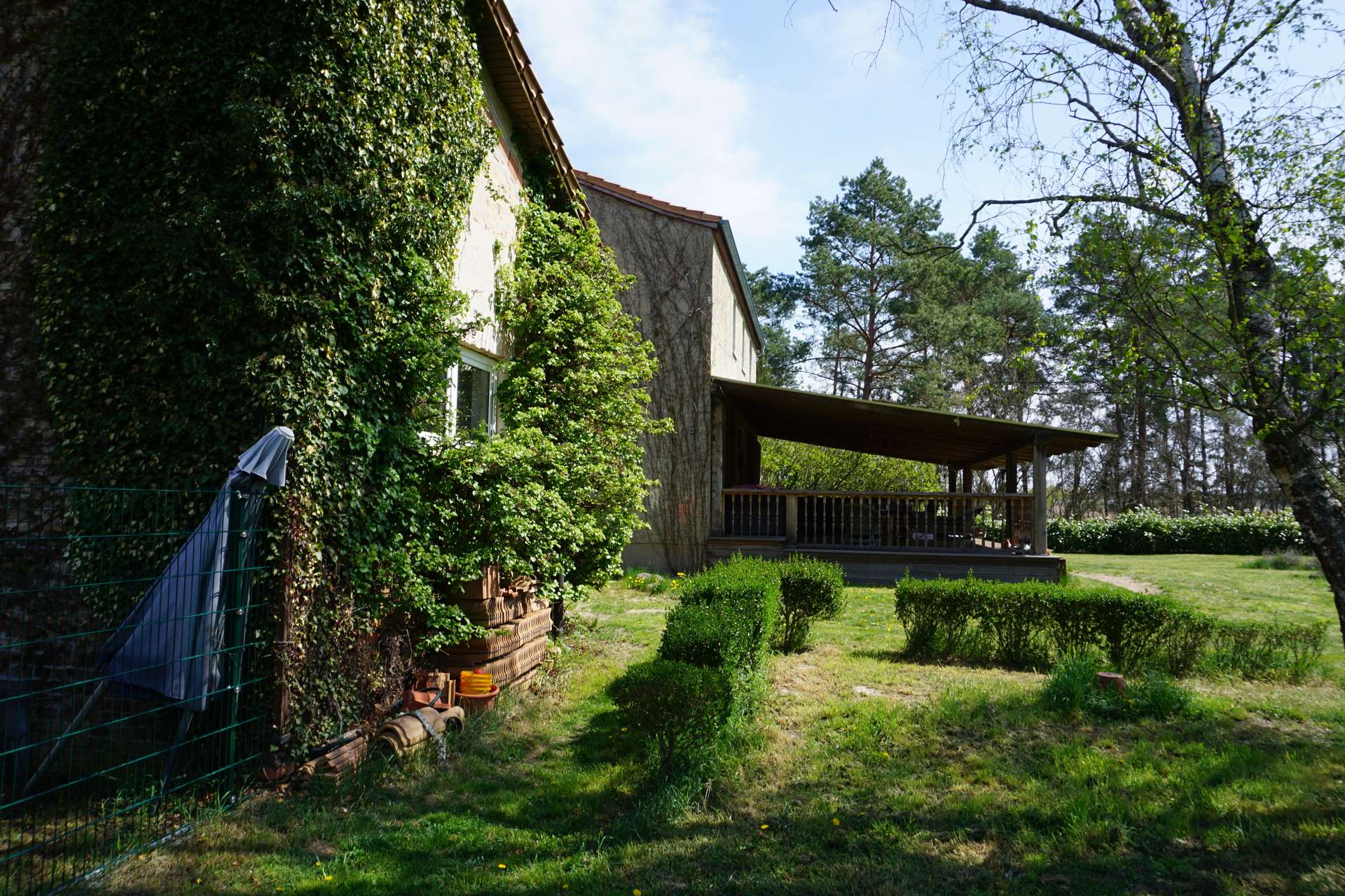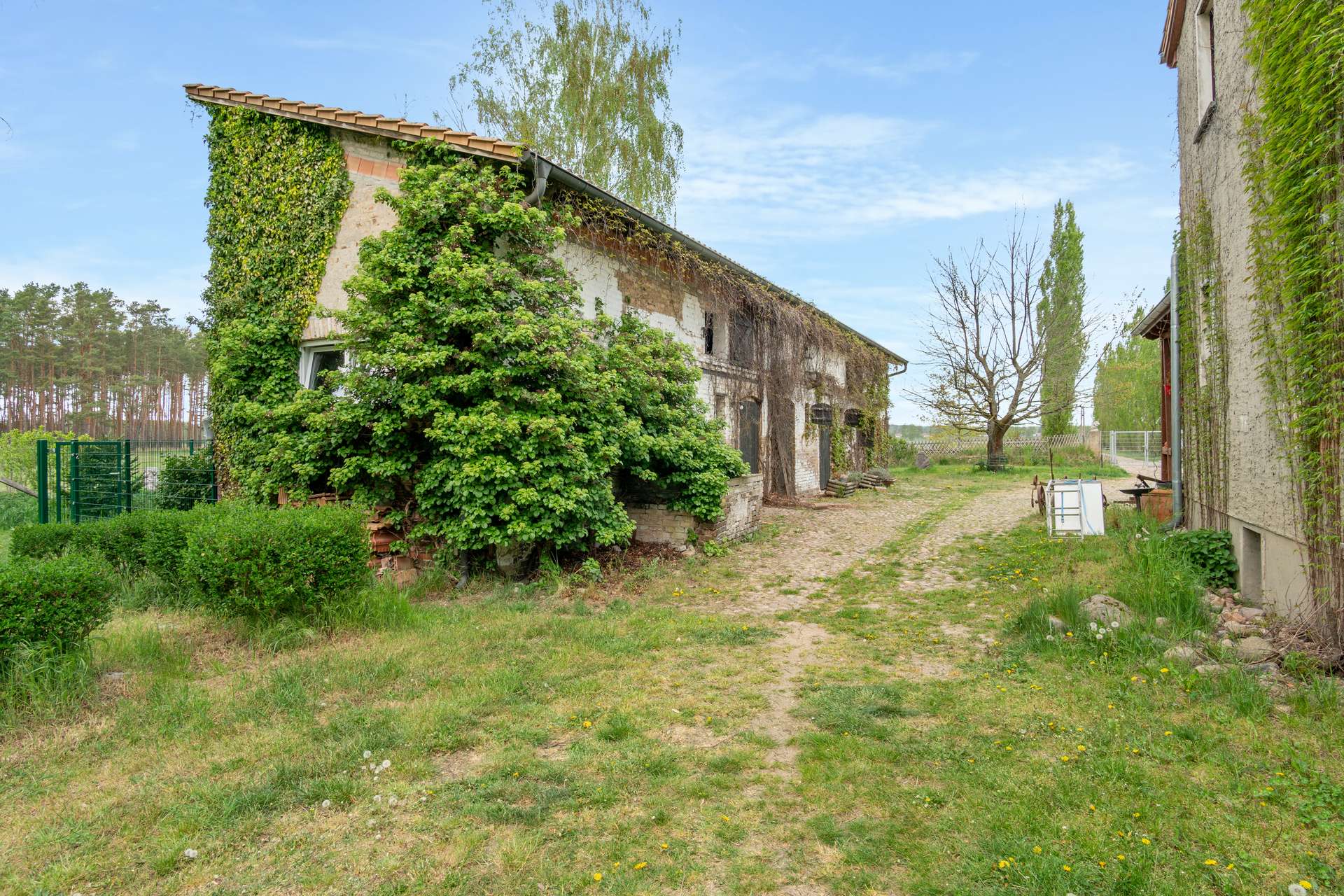 LEBEN WIE IM TRAUM o weitestgehend autarkes Leben und Wohnen durch eigenen Brunnen und neue wartungsarme Kleinkläranlage (aus 2021, nur alle 4-5 Jahre Überprüfung notwendig) o unterkellerter Altbau mit Nebengebäude (Stallung mit Teilunterkellerung) perfekt für Pferde- oder Hundehaltung o keine direkten Nachbarn o eigene Waldfläche mit 8.450 m² und 15.254 m² Grundstück (eingezäunt auf 1,8 m) – Gesamtgrundstücksfläche 23.704 m²! o Außenbereich §35 BauGB – keine weitere Bebauung möglich